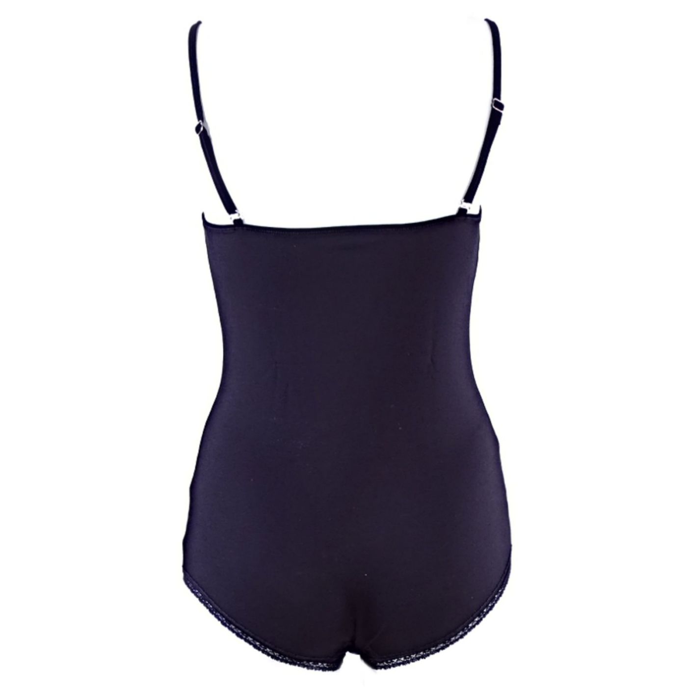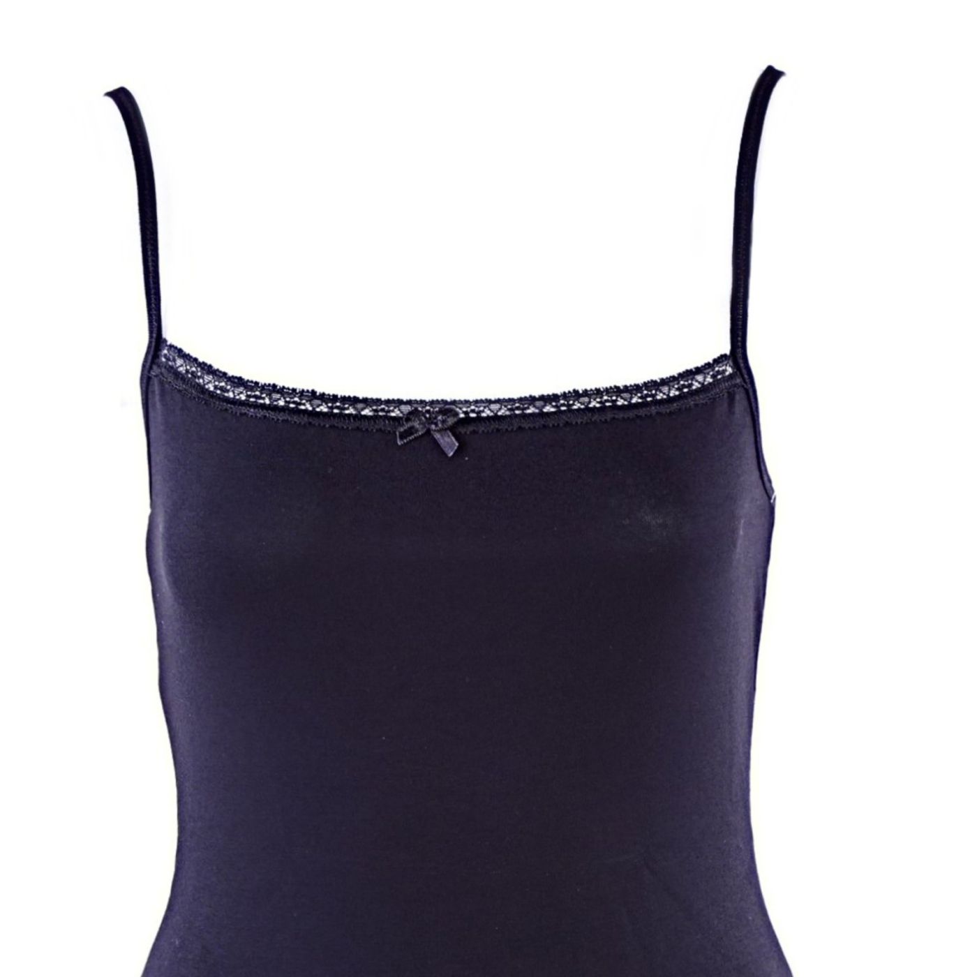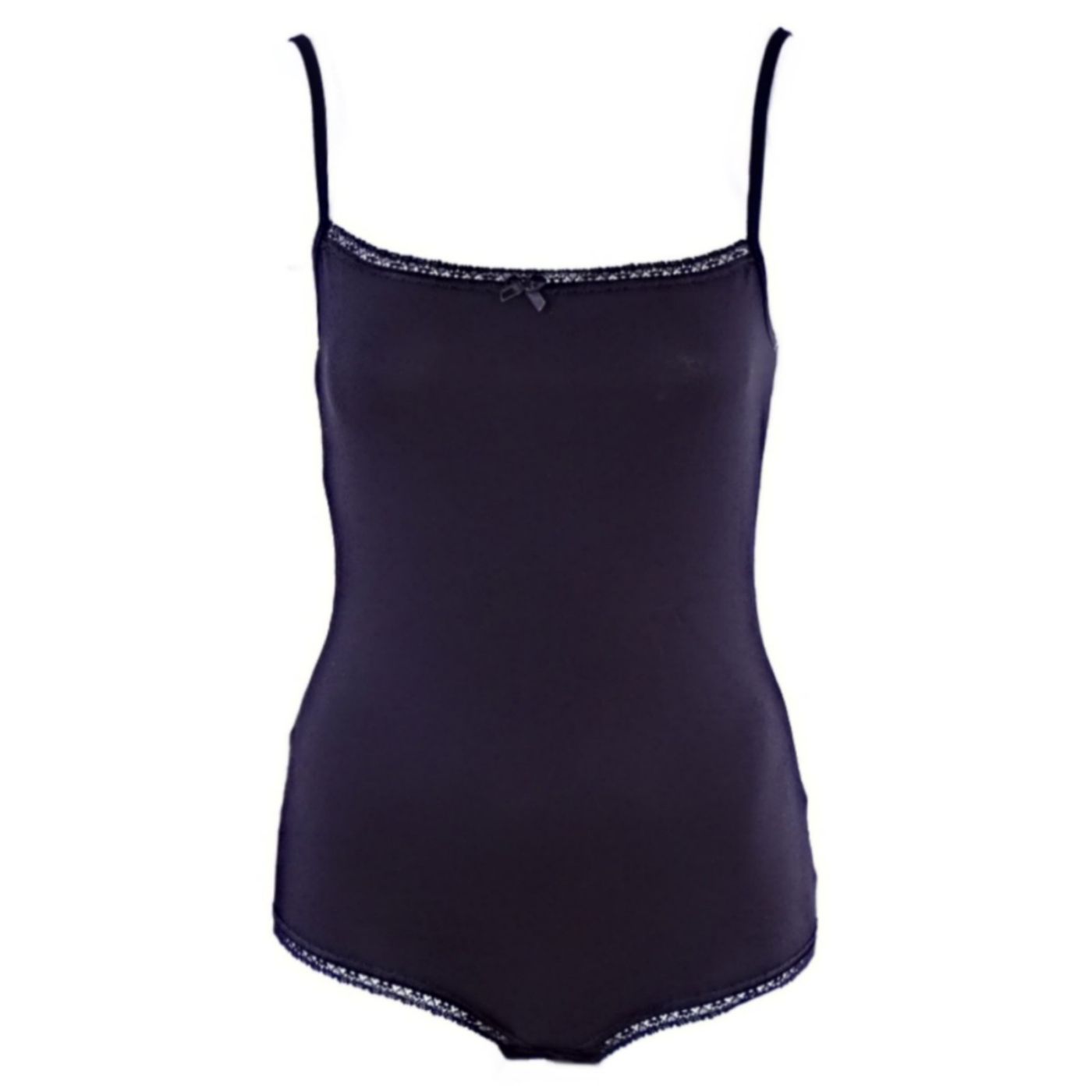 Cotton bodysuit with classical look and lace bands on the neckline. It is always the right choice! The adjustable thin straps are a plus!