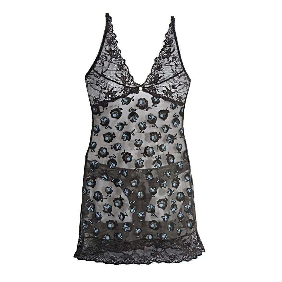 Sexy tulle set of nightwear and a brazilian. The floral print combined with lace will give you the summer vibe and sexy looks. The adjustable straps are for more comfort.
