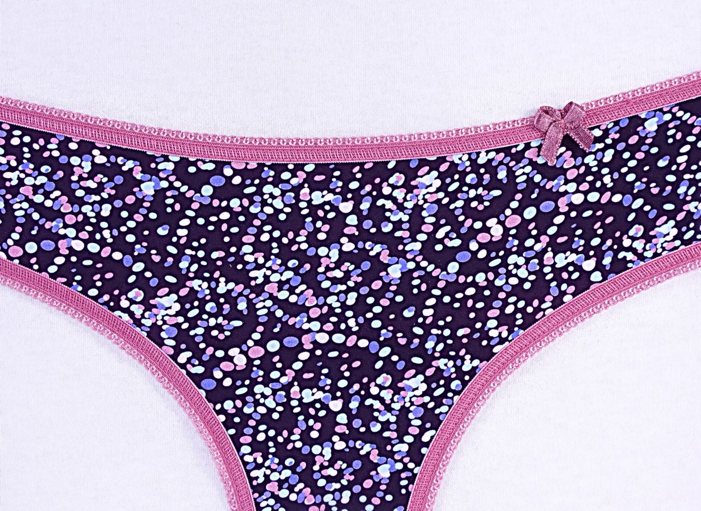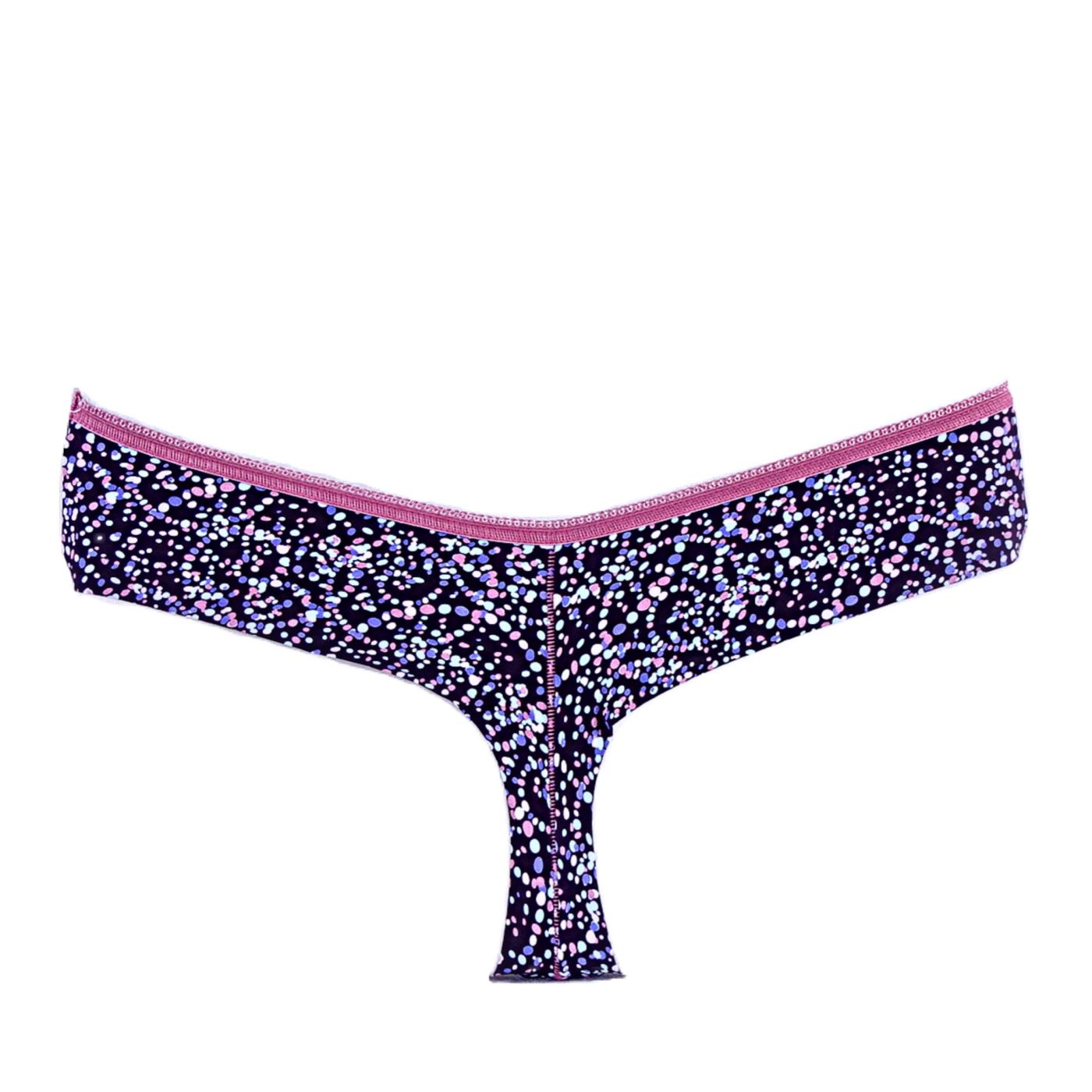Beautiful lady's microfiber brazilian with print. This model is comfortable, sewn with contrasting elastic that emphasizes the beauty of the print. Another advantage of this Brazilian is that it has a double back and is not marked under the garments.