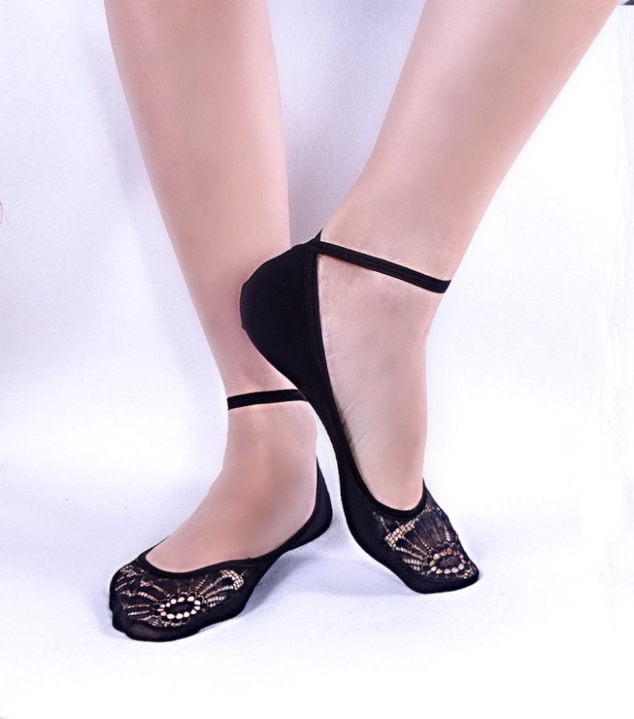 Ladies' cotton / elastan lapel with a cut in black. This ballet socks is beautiful, comfortable and with an innovative cut. Because it is quite cut to the side and to the front, so it can be worn with more open shoes, we have envisioned a fine ankle elastic that holds the tangle and looks very beautiful. The lace of the thumbs is an elegant finish to the overall look. Wear it with pleasure even in warmer days!