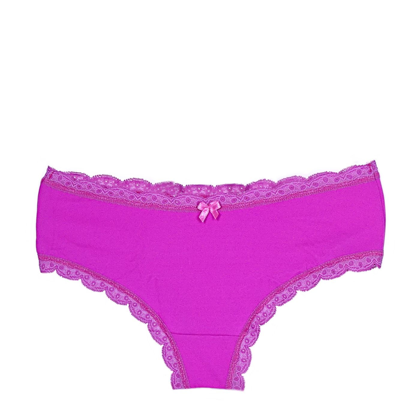 Microfiber ladies boxer. This model is in a saturated cyclamen color, with a comfortable and clean cut and is finished with a beautiful lace accent of the same color.