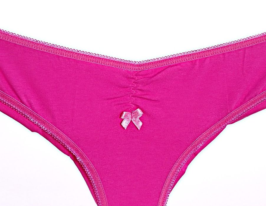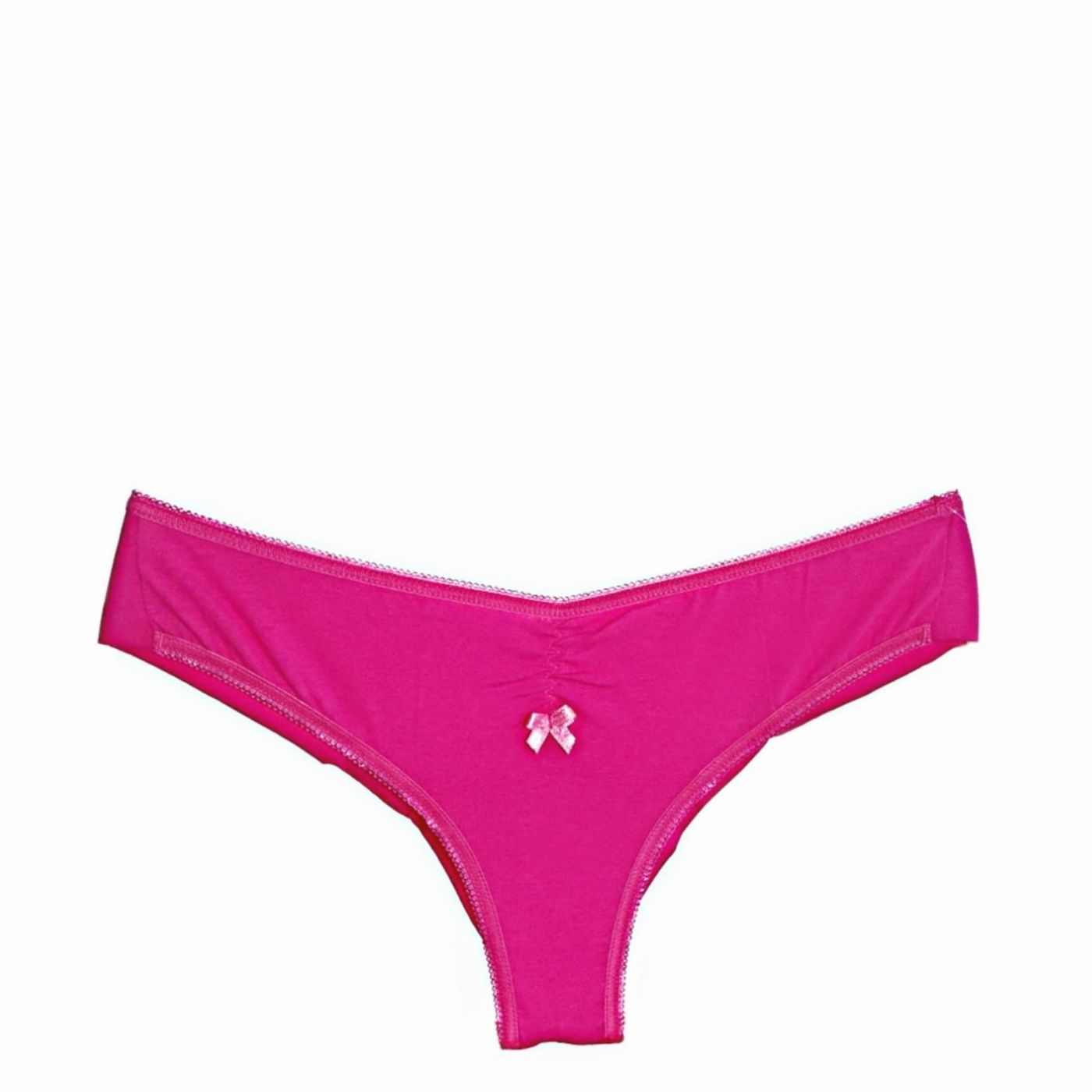 Women's cotton brazilian in cyclamen color. The model has a playful accent on