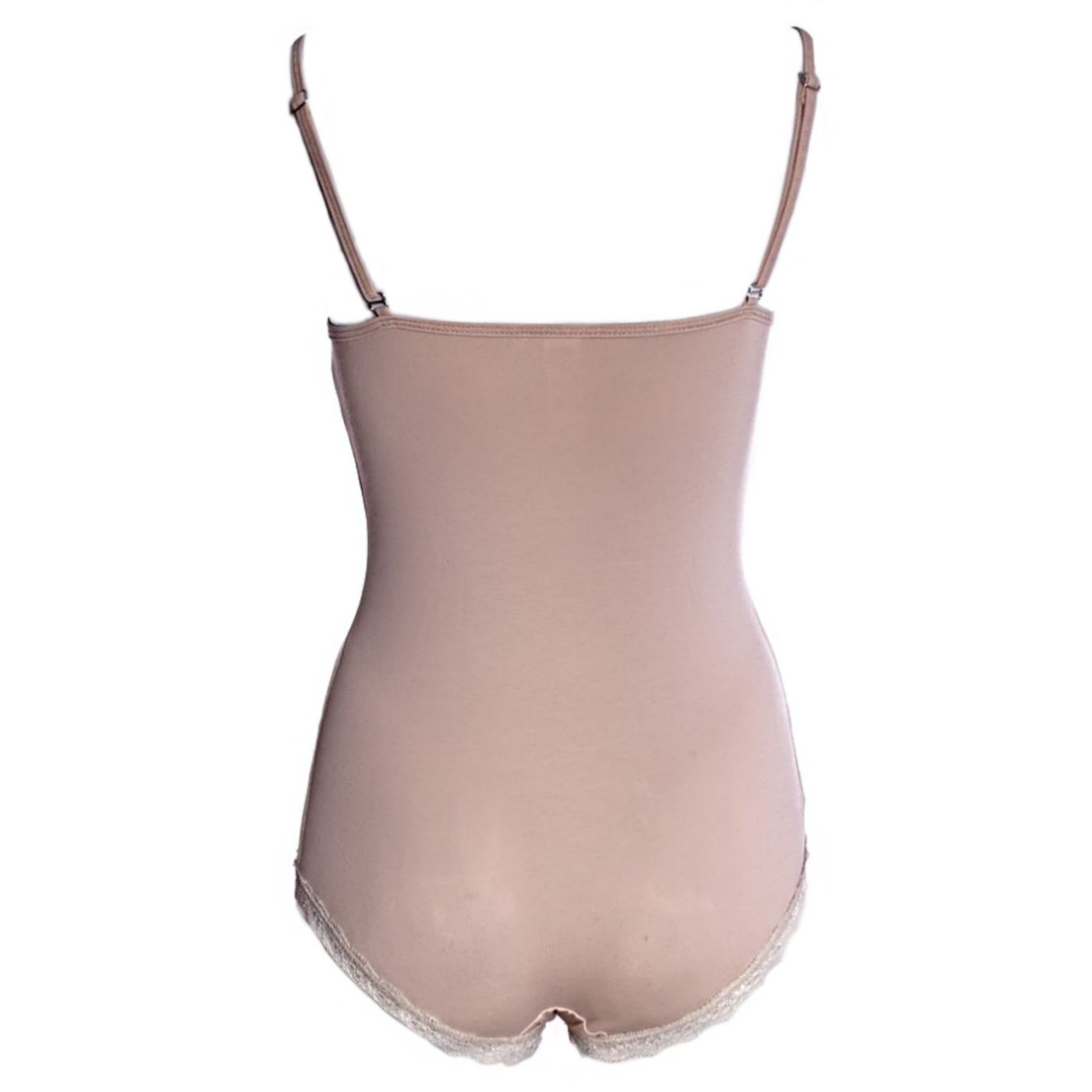 Women's bodysuit underwear boxer type in beige color. The model is made of cotton / elastane,