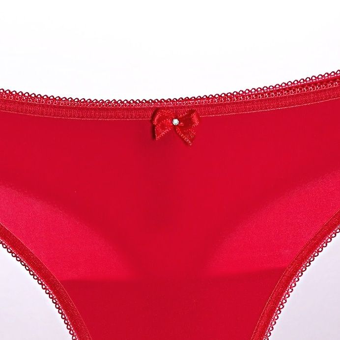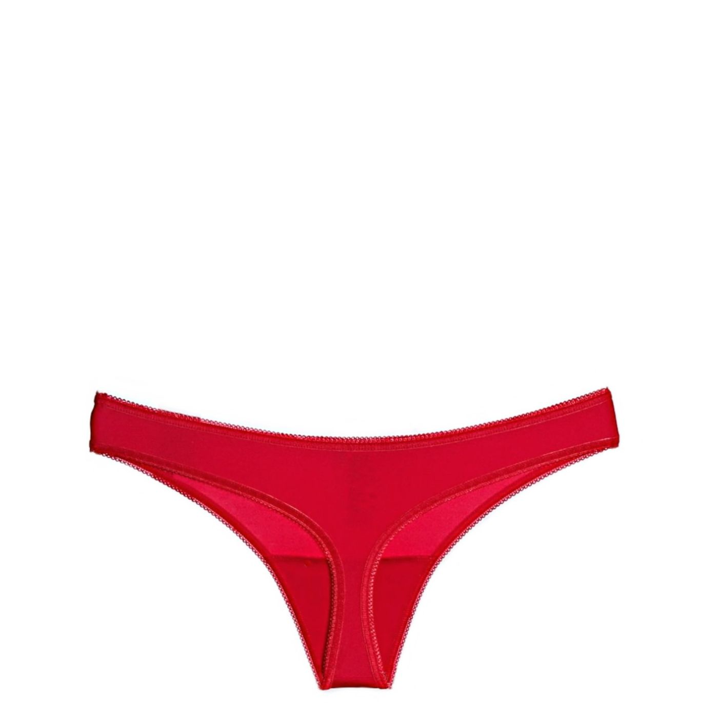 Women's microfiber thongs in red color. The model has a classic cut,