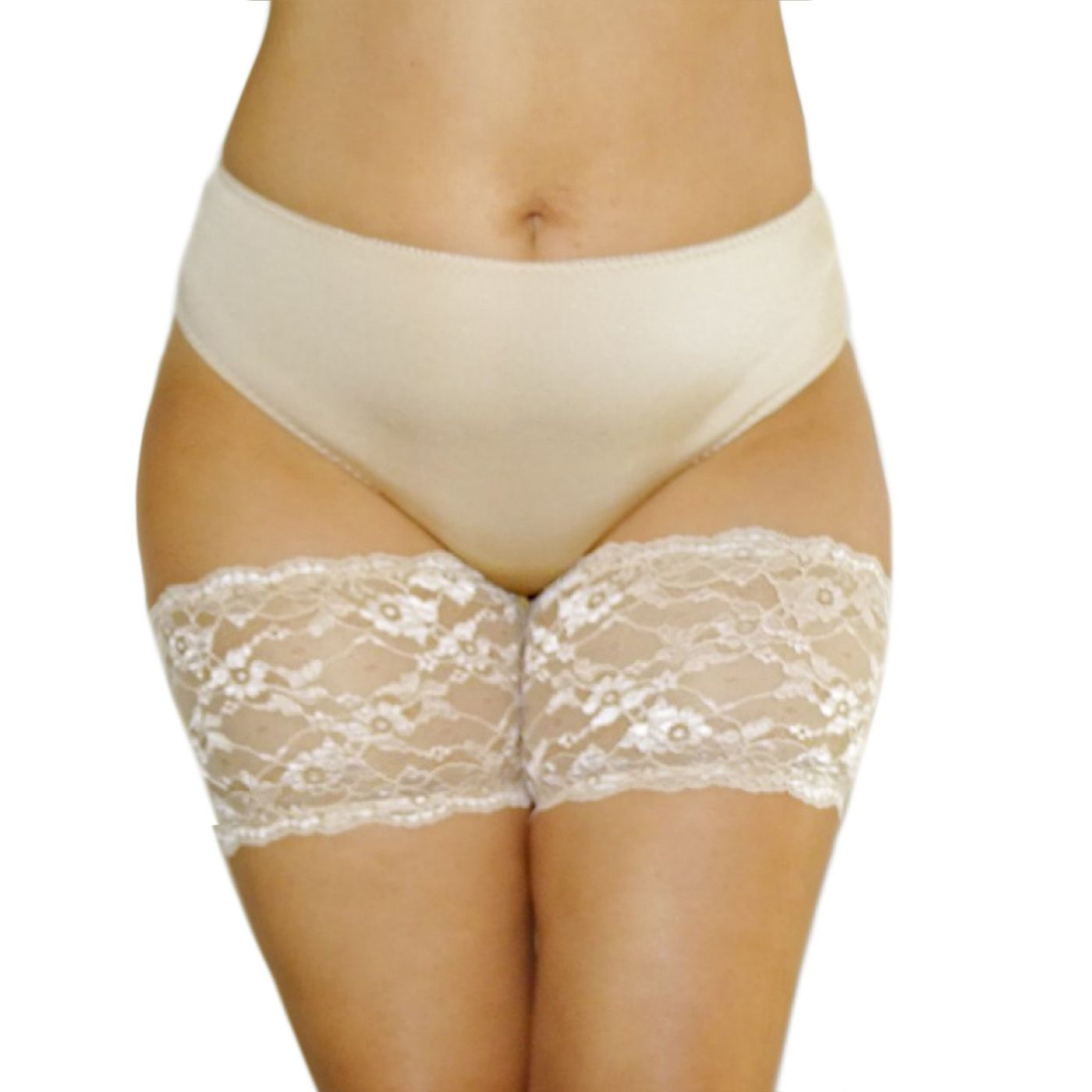 Thigh straps against lace abrasions.