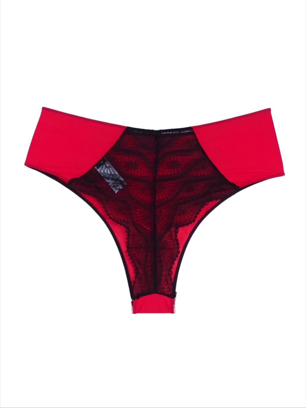 Red and black brazilaian briefs are sexy lingerie for fiery women.