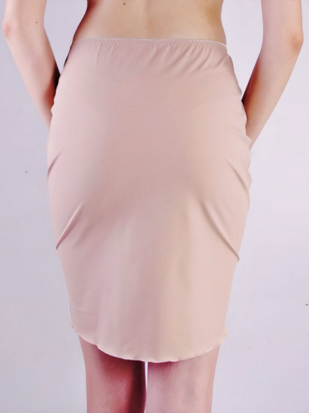 Women's just above the knee length skirt lining in stretch microfibre in a classic flesh colour. The lined model has a straight cut and an absolutely clean design, which makes it suitable for wearing under many patterns and colors of skirts and dresses.