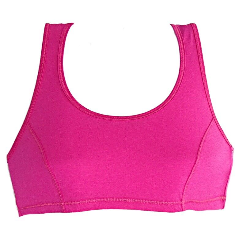 Памучно бюстие с широки презрамки в ярък цикламен цвят. Подходящо за спорт, свободно време и винаги, когато удобството е на първо място. Съчетава се с бикини и боксерки в същия цвят.