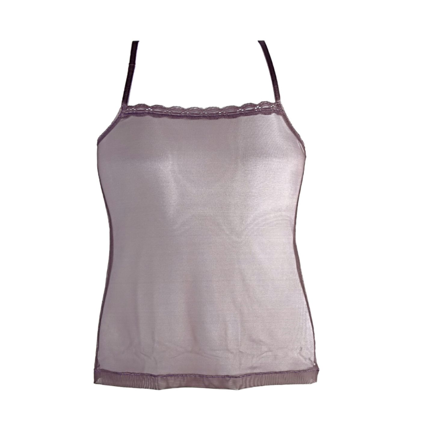 Дамски корсаж от качествен, еластичен тюл с дантелен акцент на деколтето и тънки регулиращи се презрамки в пепелив цвят. Нежно докосване за хладните есенни или пролетни дни.