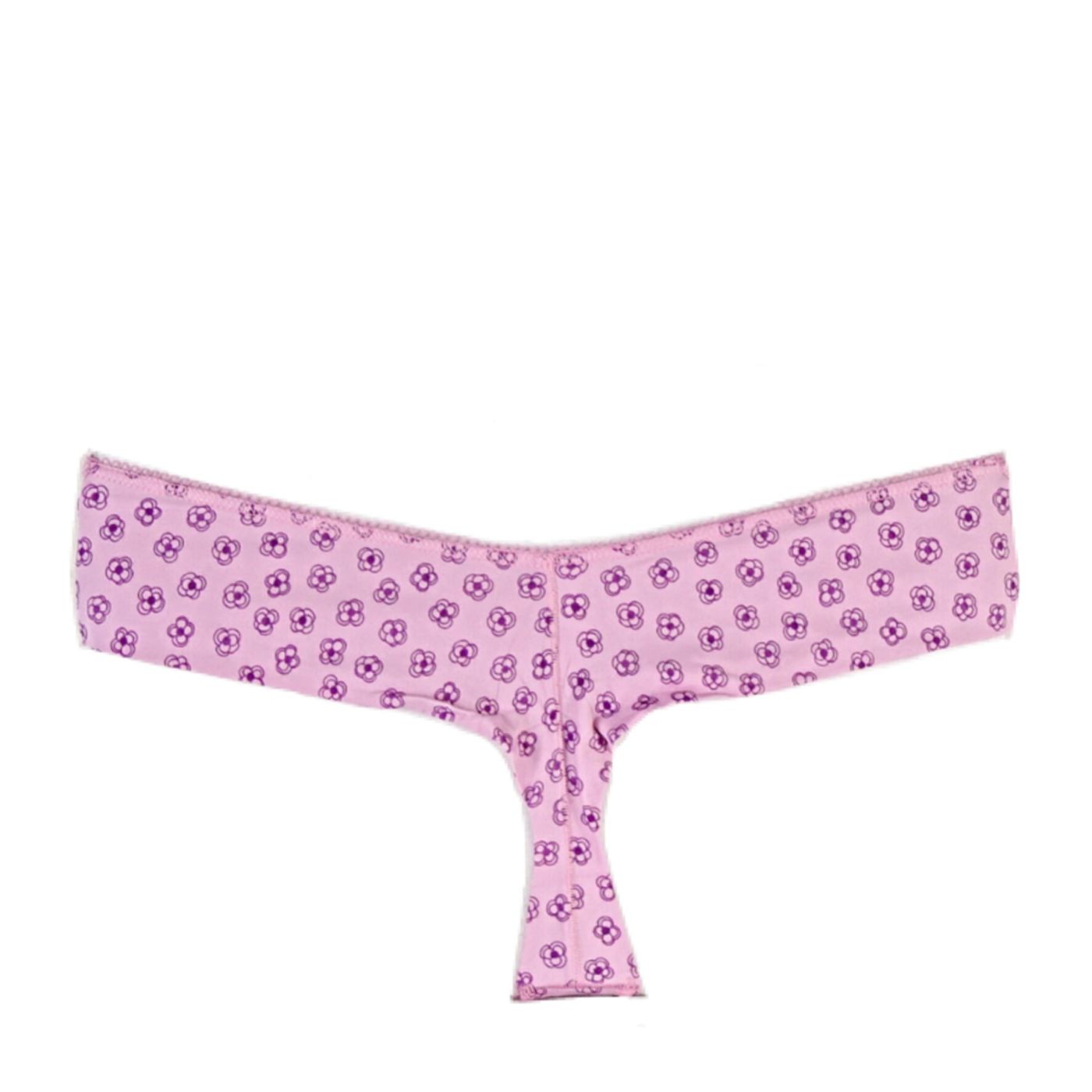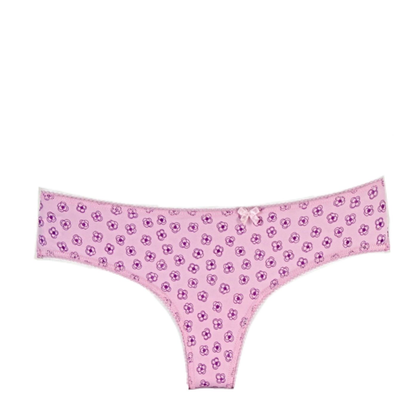 Бразиилиана, изработена от италиански микрофибър с щампа на нежни цикламени цветя върху розова основа, носеща пролетно настроение Задната част е без ластици. Не се отбелязва дори под прилепнал панталон или клин.