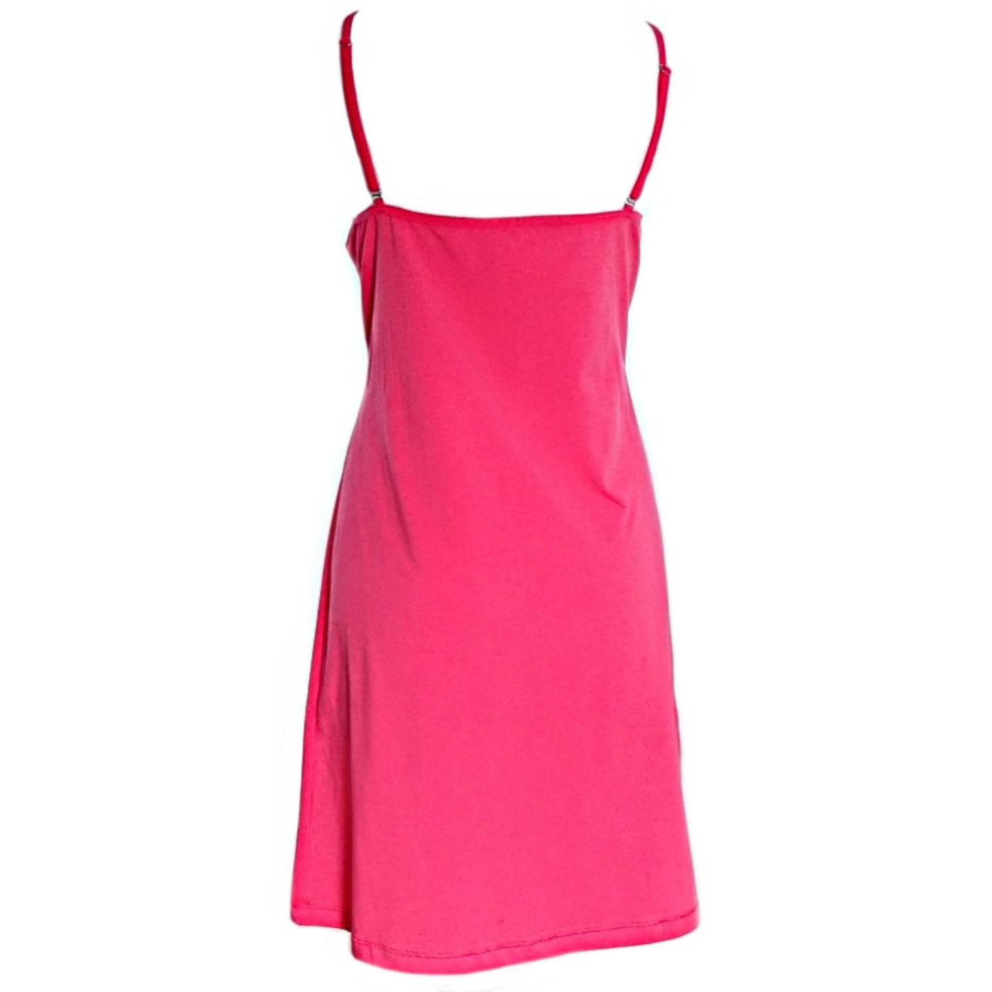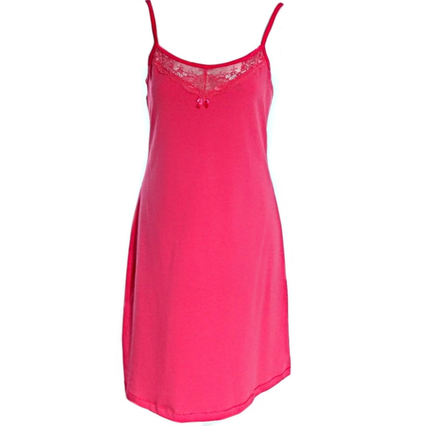 Елегантна дамска памучна нощница в цвят корал. Моделът е с дължина до средата на бедрото, с елегантно деколте с дантелен акцент, който оформя лека V-образна форма. Кройката на нощницата е със свободен силует, а презрамките са тънки и регулиращи се. Носете вкъщи или като рокля за плажа - изборът е Ваш!