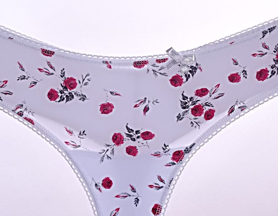 Дамска бразилиана от еластичен микрофибър в бял цвят с нежен флорален принт. Моделът е с двойна задна част, която в случая е дюс бяла. Носете с удоволствие и се чувствайте комфортно през целия ден!
