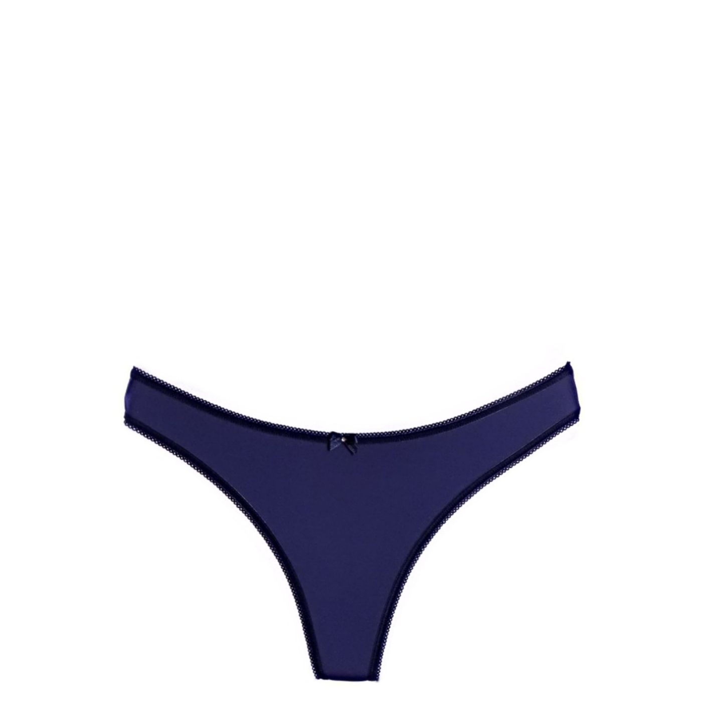 Дамски стринг в тъмно синьо. Моделът е с класическа кройка, изпълнен е от плътен, силно еластичен микрофибър, който пасва идеално по извивките Ви. Прашките са завършени с нежен акцент от сатенена панделка с блестящо камъче.