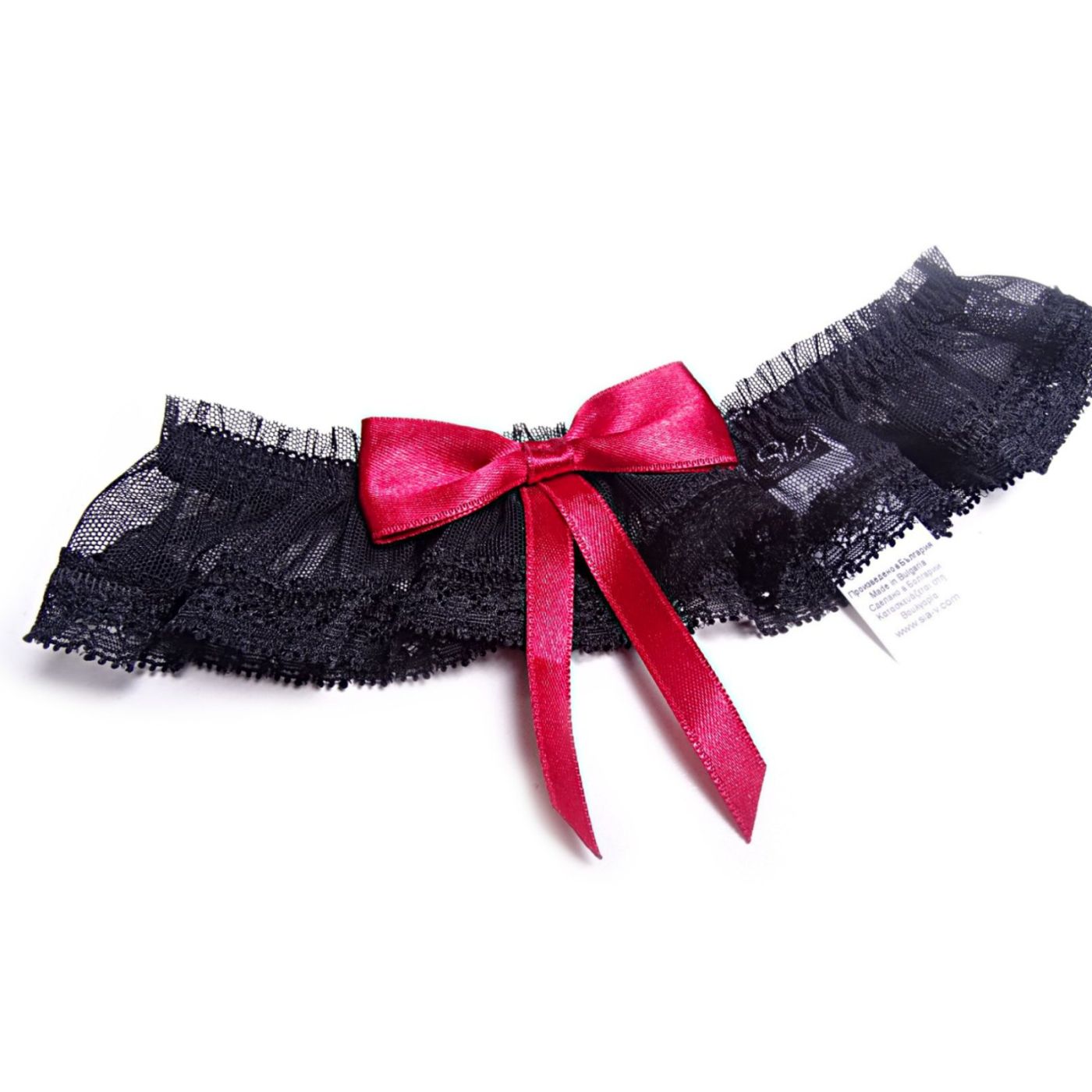 Еротичен жартиер в черно с голяма червена панделка Bow down
